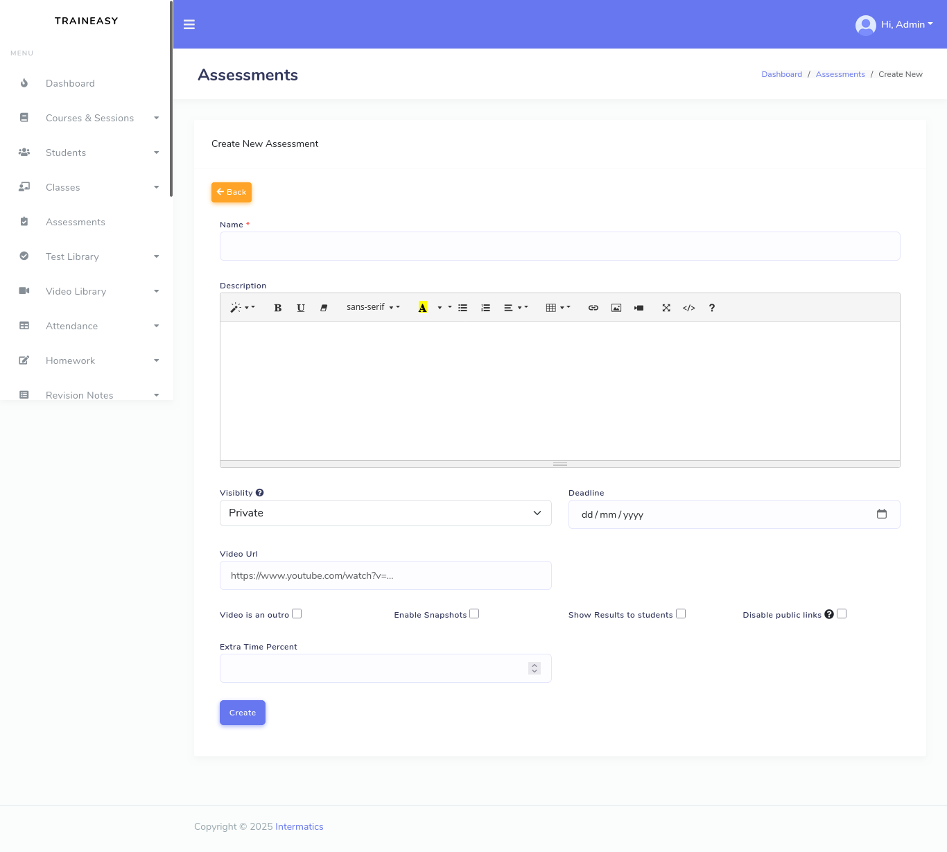 Click on the 'Training'-'Assessments' link to open the assessment management page: