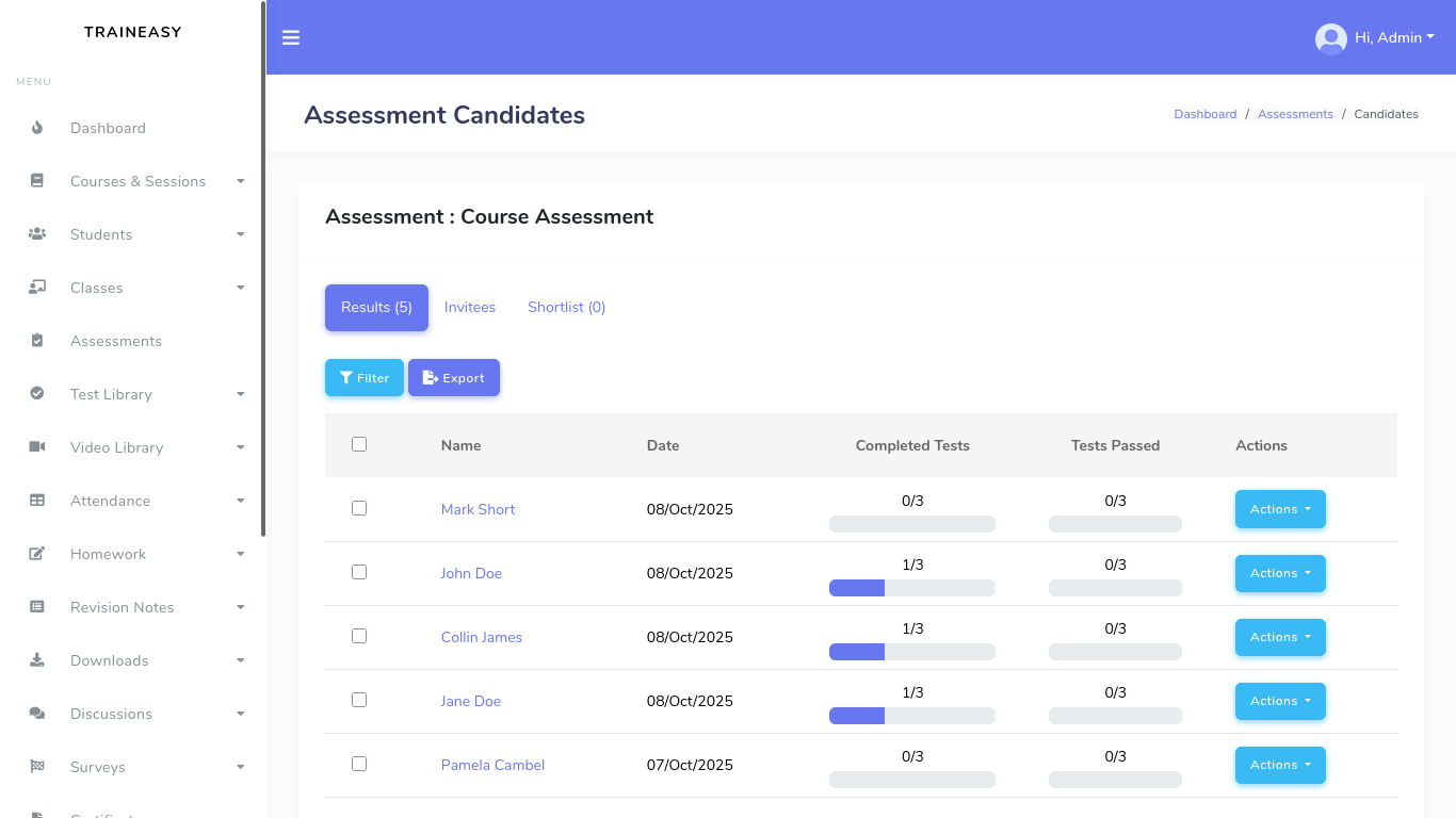 - Existing Candidates: Browse through existing students on your platform and add them.